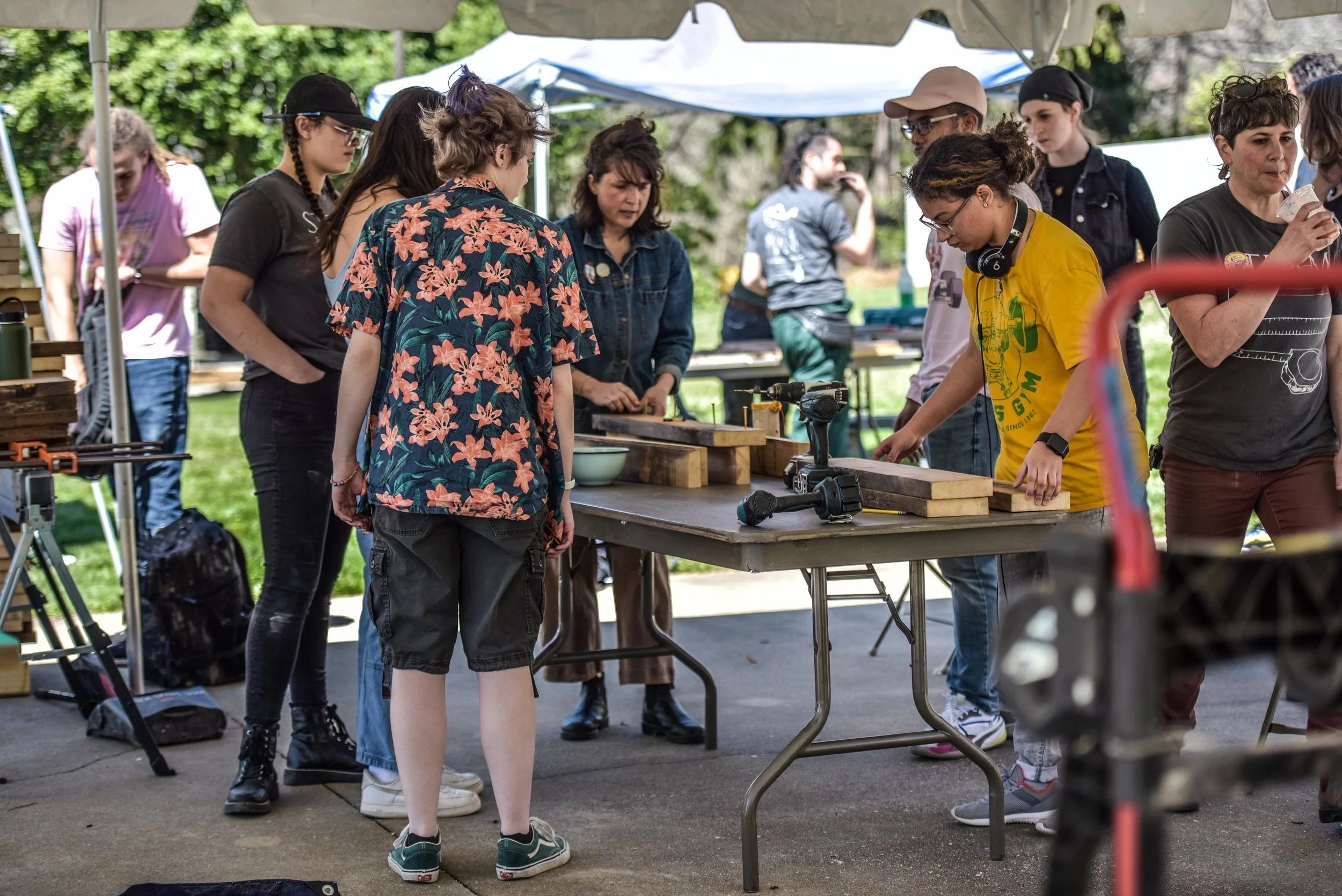T.A.B.L.E, Together All Build Love and Equity, is a collaboration between STEAM Studio, BeLoved Asheville, Craft for a Greater Good, and UNCA’s Key Center. We came together one day on the quad to build picnic tables and community for BeLoved’s Tiny Village, a community for folks with housing insecurity. The event was full of joyful making as we talked about what home means to us and poured in our hearts building communal tables, prints, and rugs.